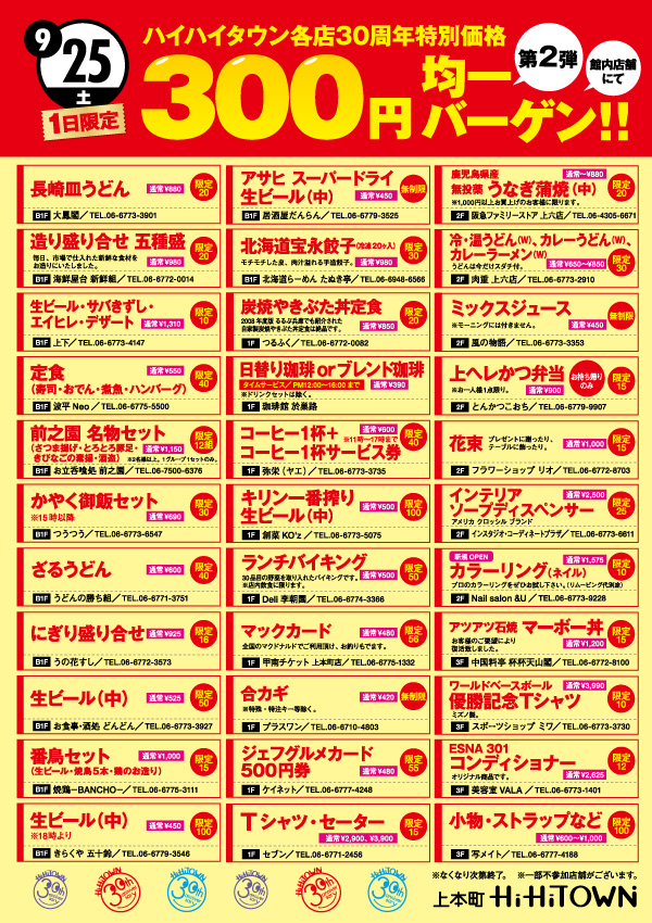 9月25日(土)「300円均一バーゲン」第二弾開催!!